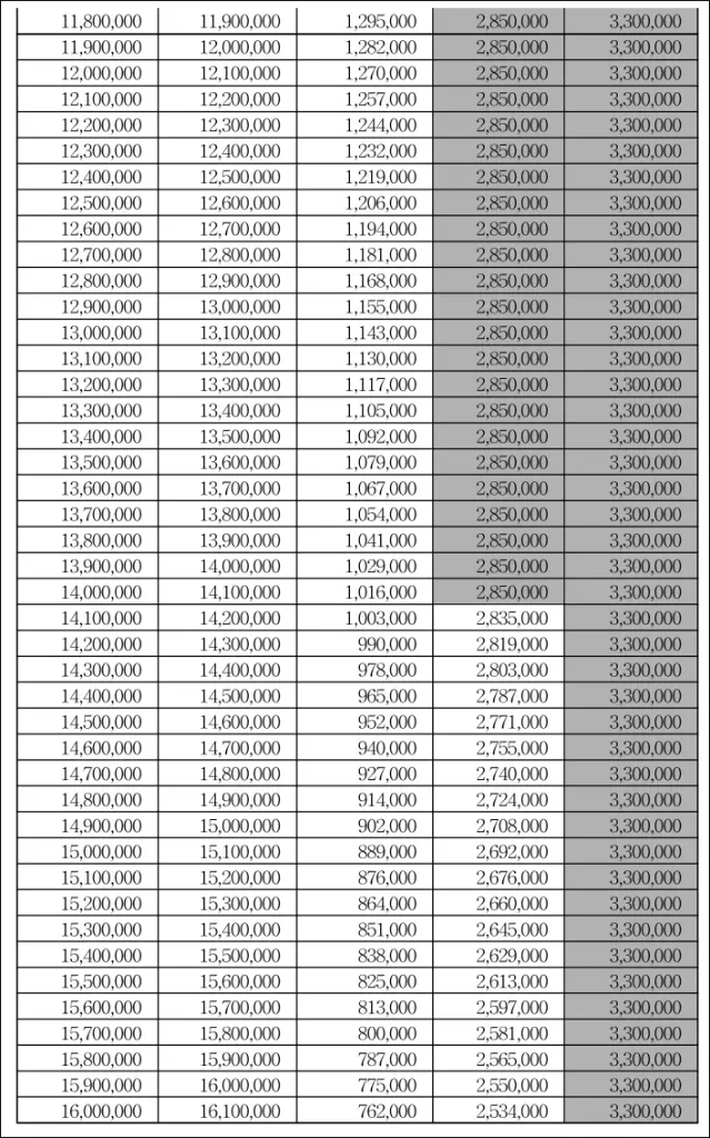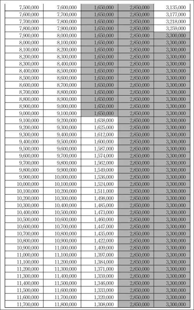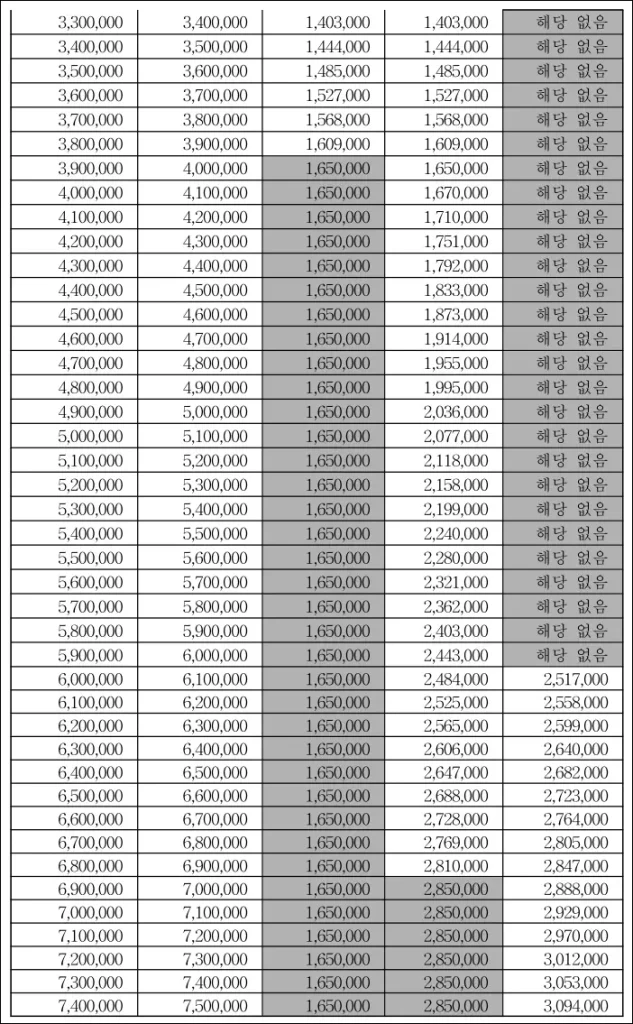 • 최저 구간: 최대 지급액에 가까움