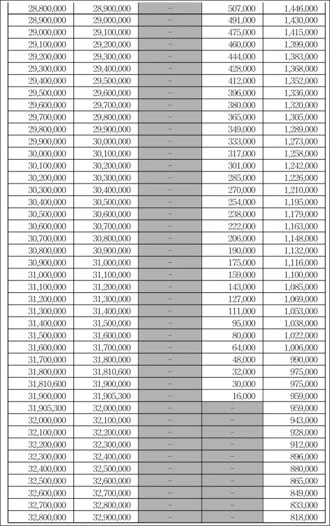 근로산정금표 마지막 페이지
