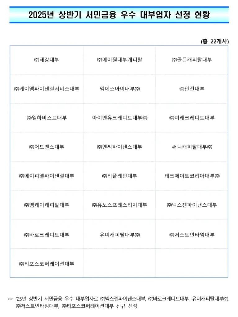 2025년 우수 대부업자 상품정보 정리
