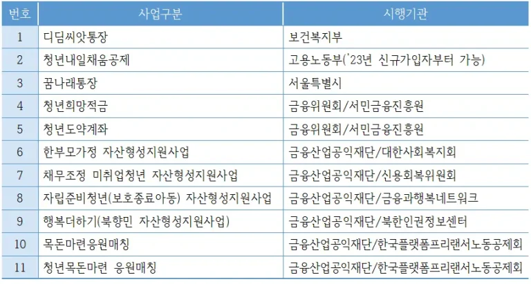2025 자산형성지원사업 중복 참여 가능/불가 리스트