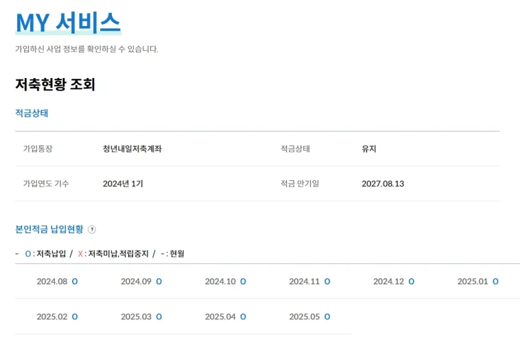 청년내일저축계좌 납입횟수 확인방법(적립금액, 미납 조회도 가능)